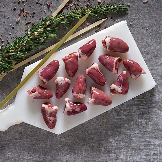 לבבות עוף טריים, מנוקים בקפידה, בעלי מרקם עדין וטעם עשיר.